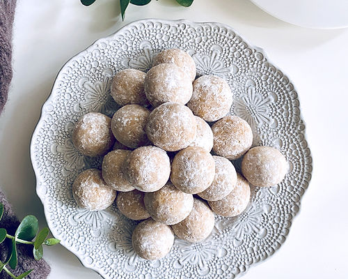 ホロホロ食感のスノーボールクッキー。きな粉の香りが広がります。有塩バターで作るのもポイントです。
